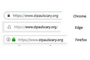 Notice anything different about our website (www.stpaulscary.org)? Up top, where the web address is, it shows a little padlock, and instead of HTTP, it now shows HTTPS. Our website is now secure, meaning that information is encrypted in its journey between your web browser and the web server. This makes improvements such as keeping bad guys from accessing the info you send to St. Paul’s via the website. This also helps our Google rankings and provides users of our website with an increased level of trust.